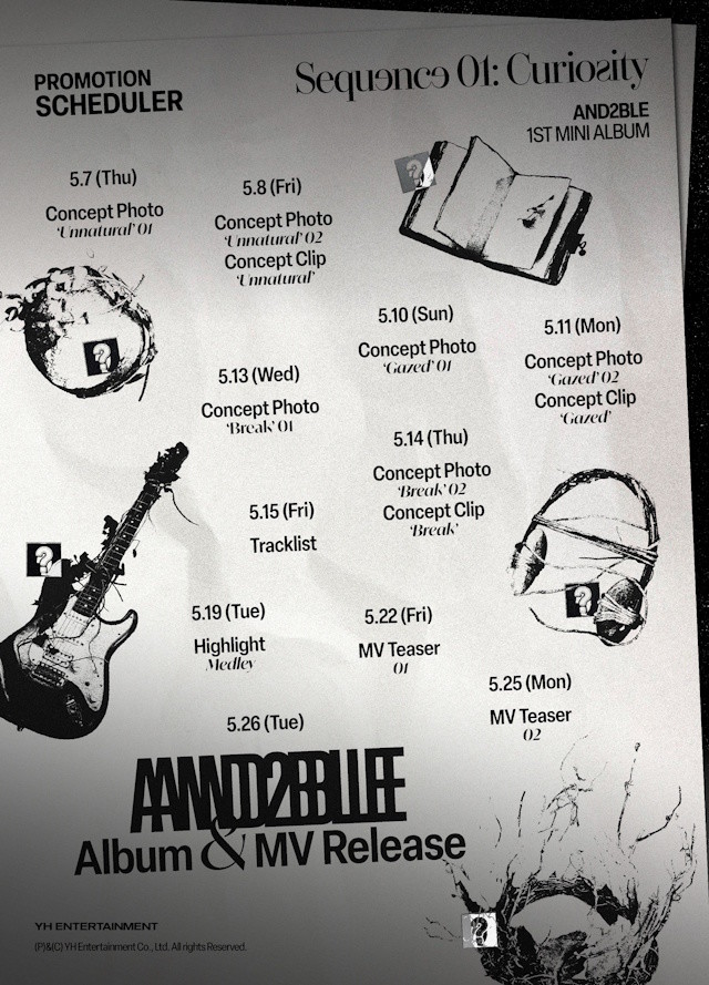이에 따르면 앤더블은 오는 5월 7일부터 세 가지 버전의 콘셉트 포토, 콘셉트 클립, 트랙리스트, 하이라이트 메들리를 순차 업로드한다. 이어 5월 22일과 25일 두 차례에 걸쳐 타이틀곡 뮤직비디오 티저를 선보이는 등 다채로운 티징 콘텐츠로 데뷔 주간을 풍성하게 채운다.