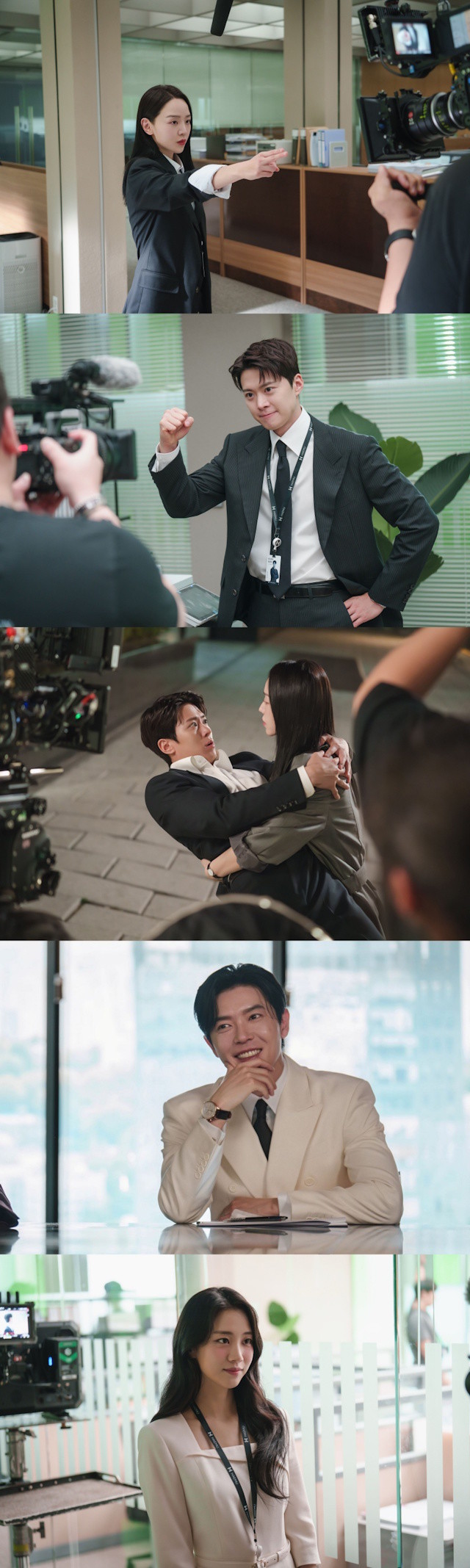 김재욱은 전재열 총괄부회장의 고고한 카리스마는 온데간데없이 유쾌한 미소로 현장을 빛내는 모습이다. 그런가 하면 홍화연은 전재열의 비서이자, ‘해무그룹’ 공식 여신 박아정 답게 우아한 비주얼을 뽐내며 보는 이들을 설레게 한다. 훈훈한 에너지로 가득한 이들이 극 중에서는 어떤 시너지를 보여줄지, 첫 방송에 대한 궁금증을 자극한다.