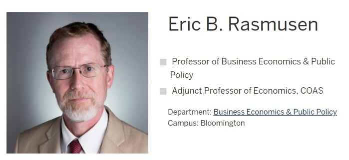 | ▲ 성차별 트윗 논란 이후 무급휴직 중인 에릭 라스무센 교수 (사진 : 인디아나대 홈페이지 캡처) |