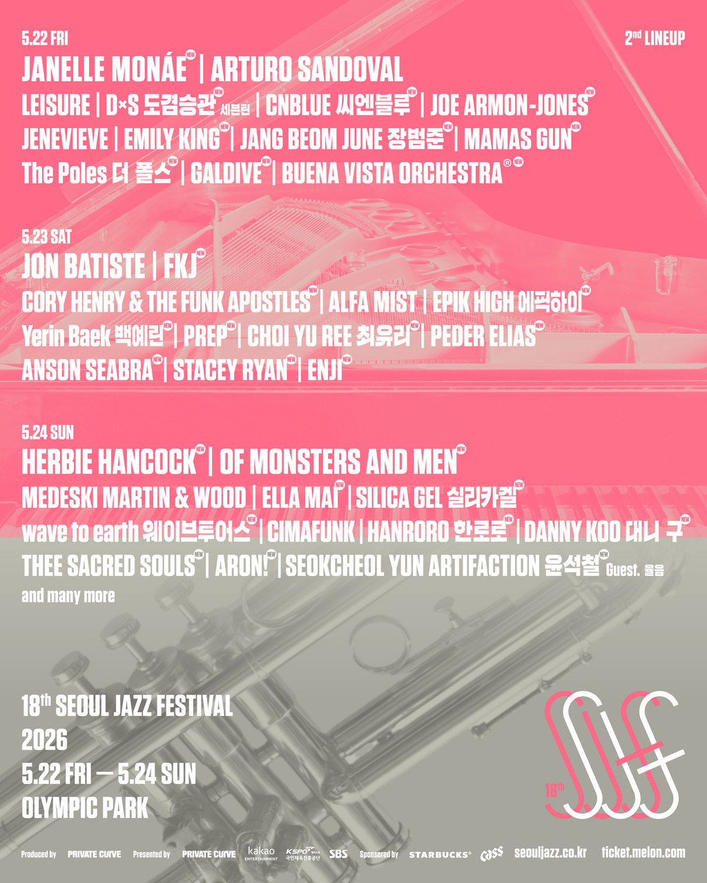 앞서 서울재즈페스티벌에는 그래미 어워즈 7회 수상자인 존 바티스트, 뉴질랜드 밴드 레저, 싱어송라이터 제네비브 등이 출연을 예고한 바 있다.