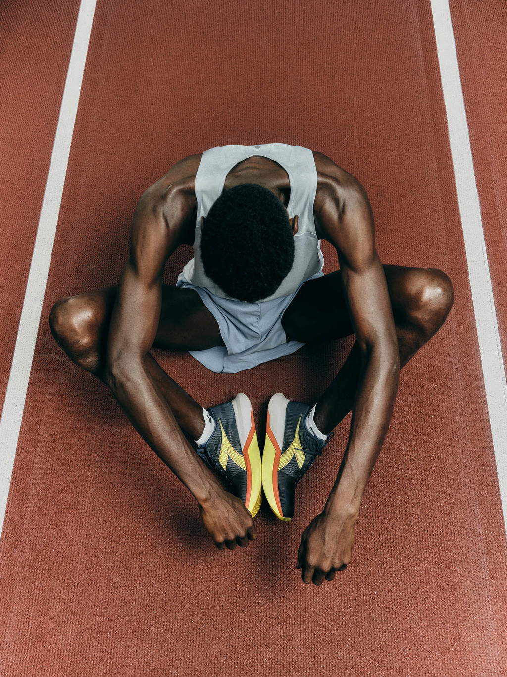 어퍼 상단에 상호 강렬하게 대비되는 네온 옐로, 오렌지 컬러 블록은 스피디한 에너지를 직관적으로 전달하고, 측면에는 디아도라의 상징인 프리즈 로고를 더해 역동성을 부각했다.