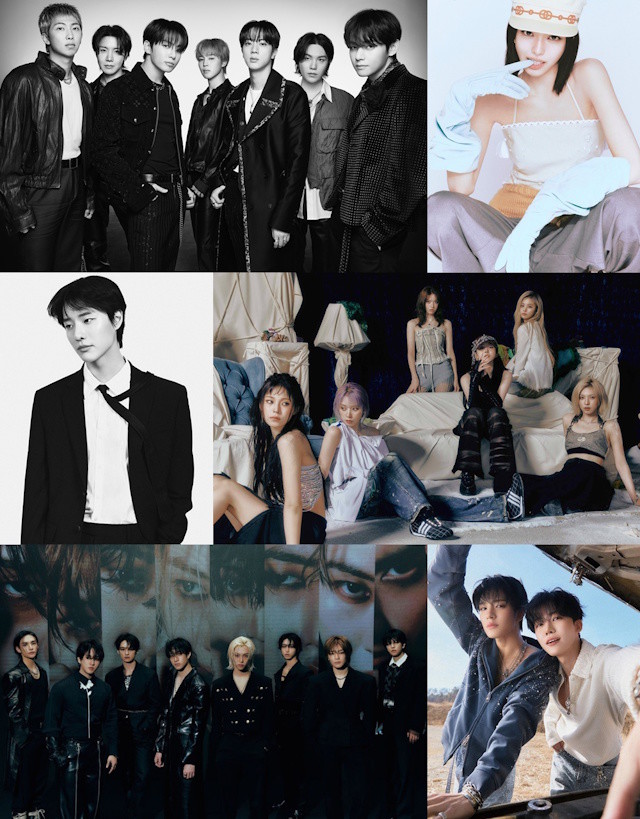 | ▲ [사진 = 빅히트 뮤직(방탄소년단), EDAM엔터테인먼트(우즈), JYP엔터테인먼트(스트레이 키즈·엔믹스·유나), SM엔터테인먼트(NCT JNJM) 제공] |