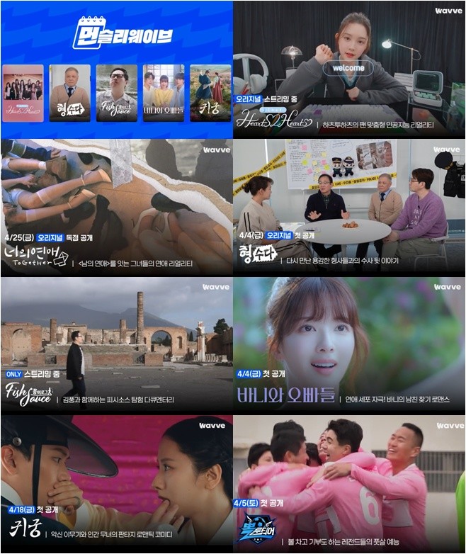 [SWTV 김지연 기자] 웨이브(Wavve)가 먼슬리 웨이브 영상을 통해 4월 신작 라인업을 공개했다. 1일 웨이브는 오직 웨이브에서만 볼 수 있는 오리지널 콘텐츠를 비롯해, 드라마, 예능, 해외시리즈 등 다양한 장르의 신작들을 선보여 풍성한 4월을 예고했다.