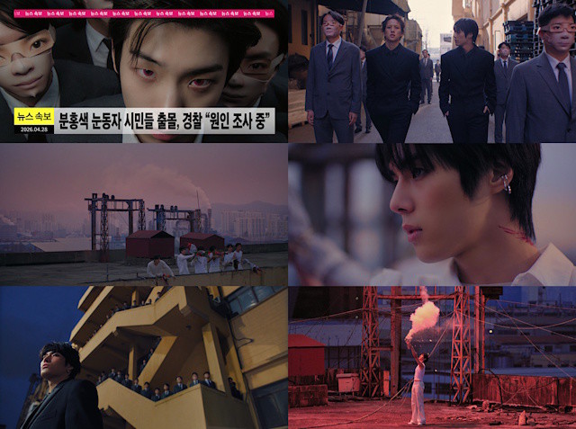 이어지는 장면에서는 분위기가 반전되며 화이트 의상을 입은 멤버들이 등장했다. 몸 곳곳에 기하학적인 타투를 새긴 이들은 화려한 꽃으로 만든 총을 겨누고 신호탄을 터트리는 등 앞선 모습과 대비되는 강렬한 에너지를 뿜어냈다.