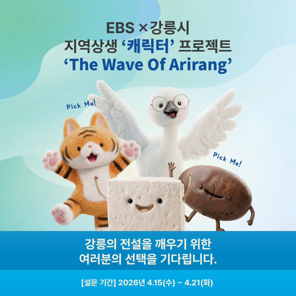 한편 오는 15~21일에는 강릉시 관광 캐릭터 선정을 위한 설문조사가 진행된다. 본 설문조사는 온라인으로 누구나 참여할 수 있다. 캐릭터는 시민 의견 60%와 전문가 의견 40%를 반영해 선정하며, 선정된 캐릭터는 EBS의 다양한 콘텐츠를 비롯해 강릉시 관광 홍보와 각종 행사, 마케팅 사업 등 다양한 분야에서 활용될 예정이다.