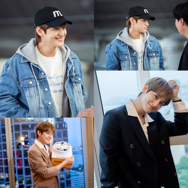 29일 소속사 킹콩 by 스타쉽 측은 SBS 수목드라마 ‘오늘도 매진했습니다’에서 글로벌 스킨케어 브랜드 레뚜알의 전무이사 서에릭 역으로 출연하는 김범의 촬영 현장 스틸을 여러 장 공개했다.