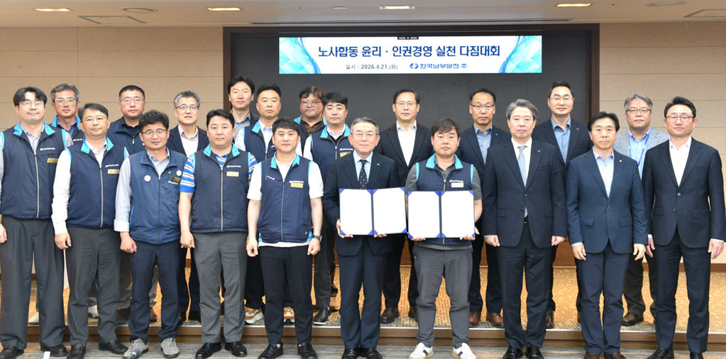 [SWTV 이정우 기자] 한국남부발전은 지난 21일 본사 비전룸에서 ‘노사합동 윤리·인권경영 실천 다짐대회’를 개최하고, 청렴 실천과 인권경영 강화를 위한 공동 결의를 선언했다고 22일 밝혔다.