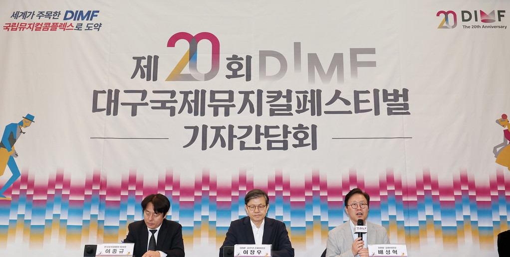 | ▲ (왼쪽부터) 이종규 한국뮤지컬협회 이사장, 이장우 DIMF 20주년 준비위원장, 배성현 DIMF 집행위원장 [사진=연합뉴스] |