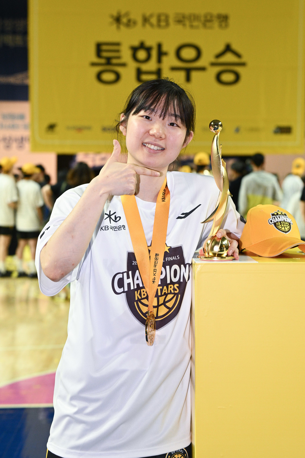 허예은은 26일 경기도 용인체육관에서 열린 BNK금융 2025-2026 여자프로농구 챔피언결정전(5전 3승제) 3차전에서 KB스타즈가 용인 삼성생명을 80-65로 꺾고 시리즈 전적 3전 전승으로 우승을 확정한 이후 시상식에서 챔피언 결정전 MVP로 선정됐다.
